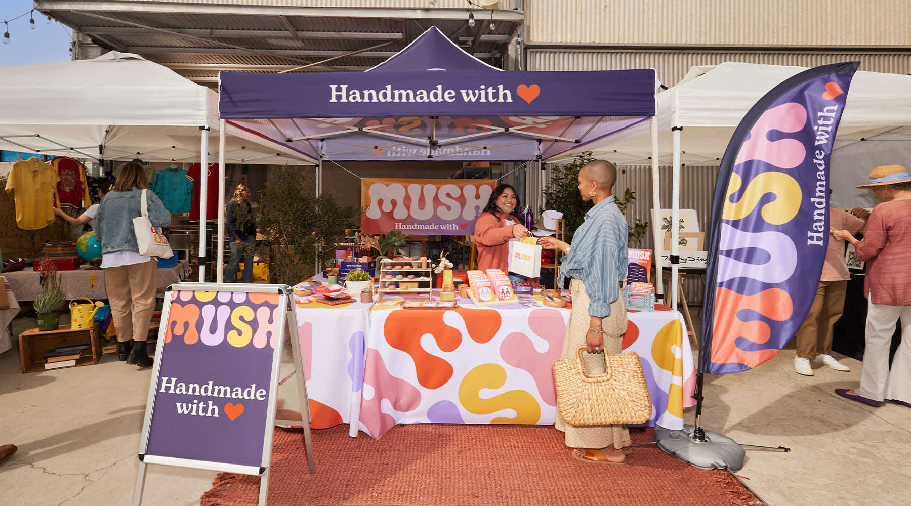 Make your brand memorable (even when the event’s over) with a thoughtful packaging experience. Start by adding your brand to your packaging – it can be as simple as sticking a label or sticker to a jar, box or bag. And when you’re wrapping up an order, pack it in a branded box or paper bag and drop in one of your business cards. In addition to looking more professional and credible, branding your merchandise will keep you top-of-mind long after your customers have returned home.