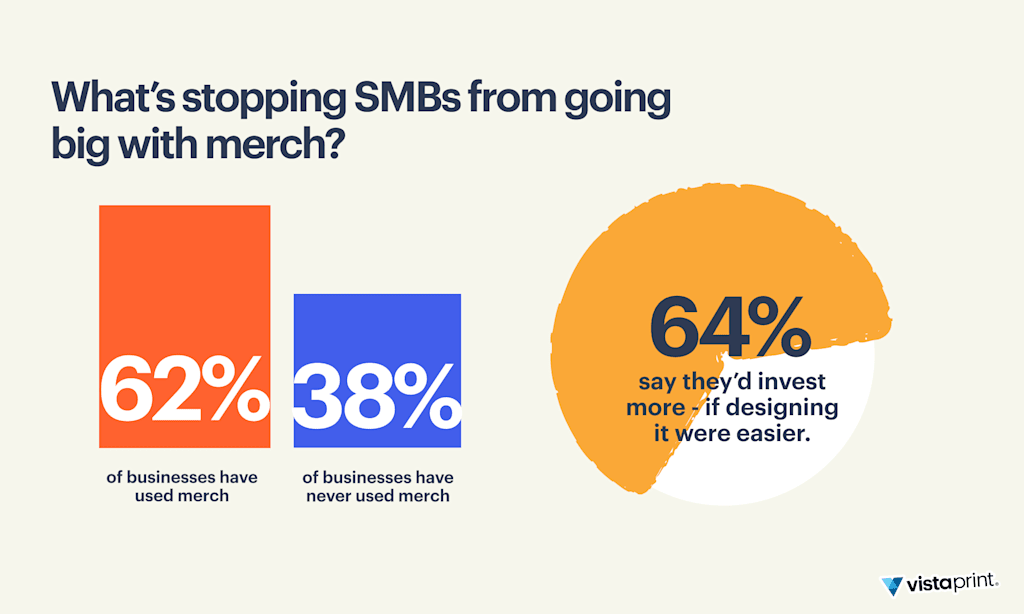 The good news? That’s starting to change. Interest is growing, with 24% of SMBs considering branded merch, and 64% saying they’d be more likely to invest if the design process were simpler.