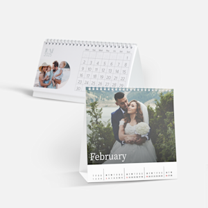 Create a fun and functional personalised desk calendar in two easy, compact sizes. Spiral bound and self-standing, with photo and text customisation options.