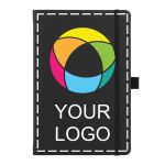 Elevate your professional ensemble with a sleek, practical journal, great for today's business landscape. With its built-in ribbon page marker, secure elastic closure and convenient pen loop and document pocket, it caters to all your organisational needs. It’s easy to customise — add your logo, message or info using our intuitive studio. Need a hand? Our design experts are here to help bring your ideas to life.